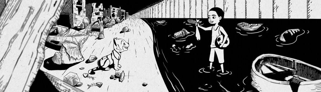“Wandering through the Worst Zoo in the World, a boy is looking for his football. He encounters a little tiger, who follows him on his quest to find a safe place to play. But the remnants of war harbor danger.”